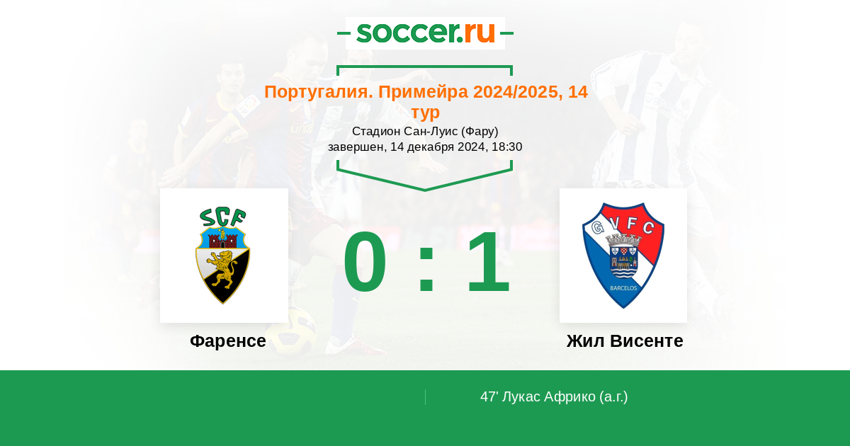 Протокол матча Фаренсе против Жил Висенте
