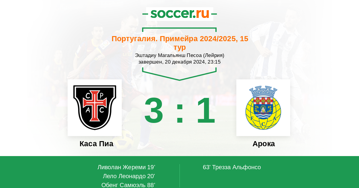 Протокол матча Каса Пиа против Арока