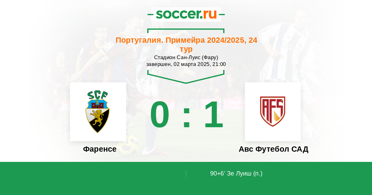 90+6’ 0:1(П) Зе Луиш