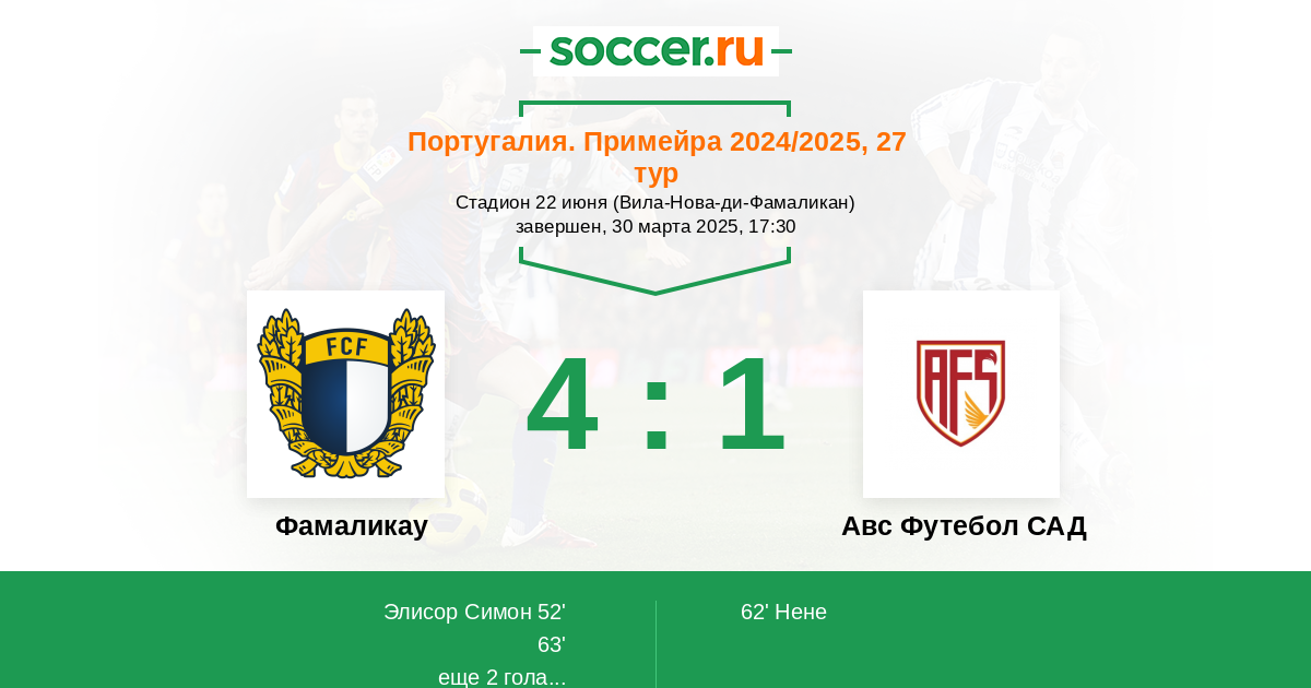 63' (2:1) M. De Amorim (Са Густаву (20))