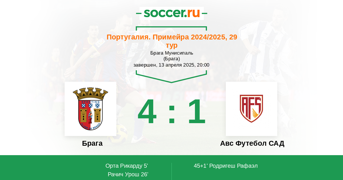 5' (1:0) Орта Рикарду (21) (Патрао Афонсу (67))
