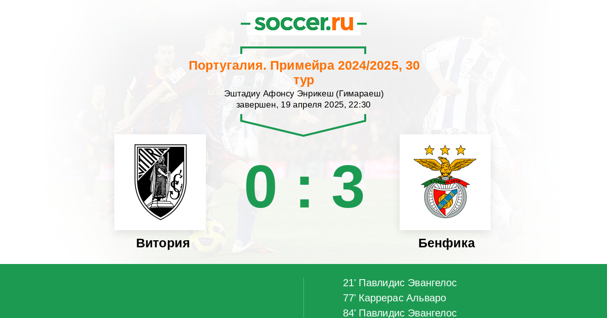 Протокол матча Витория против Бенфика