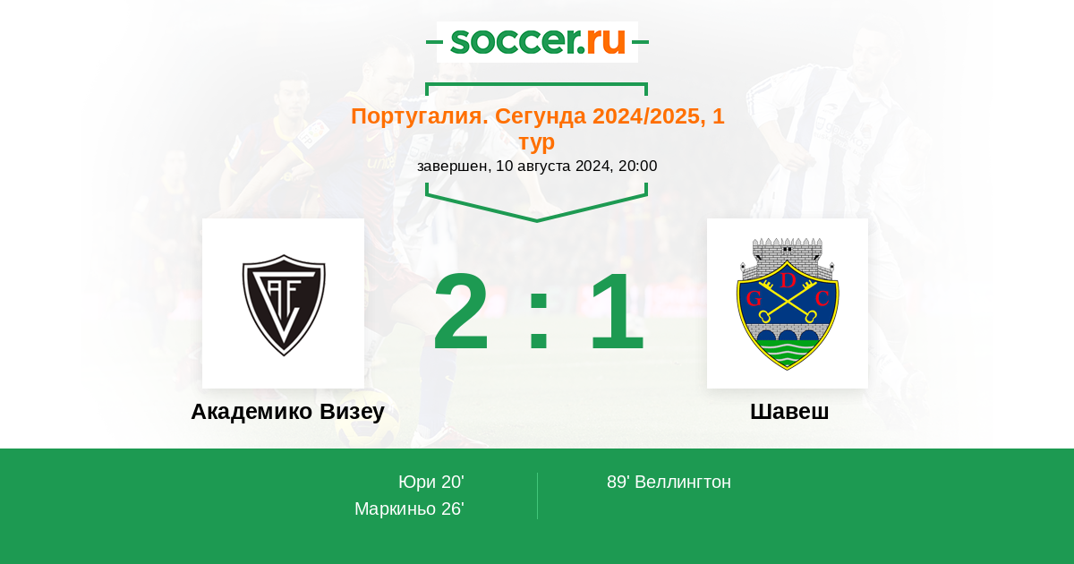 Протокол матча Академико Визеу против Шавеш