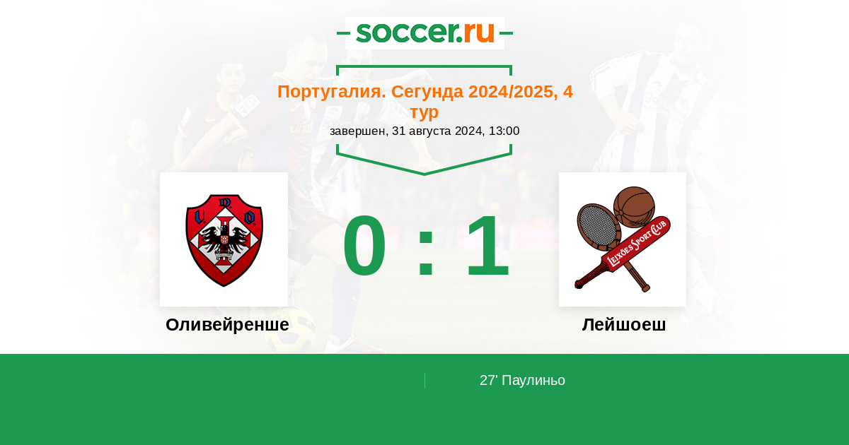 27' (0:1) Паулиньо (10)