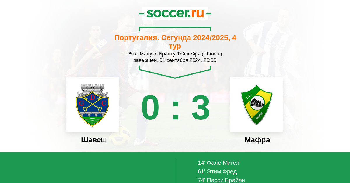 Протокол матча Шавеш против Мафра