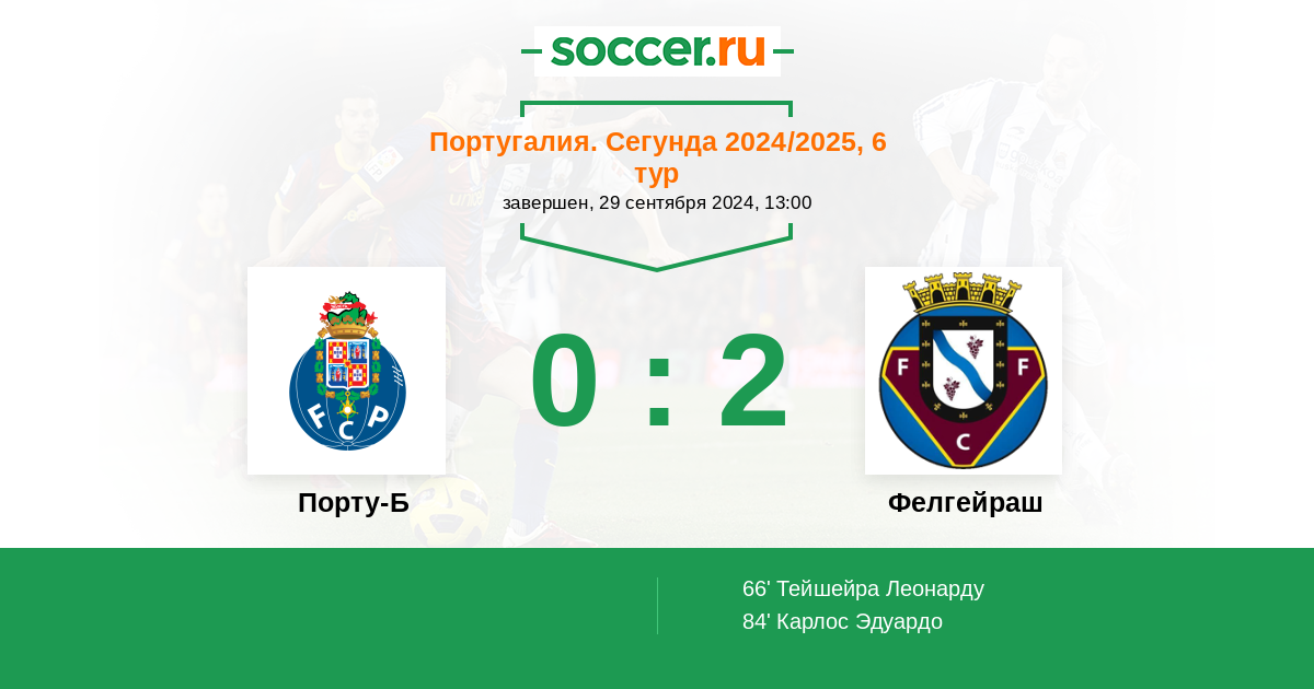 66' (0:1) Тейшейра Леонарду (19)