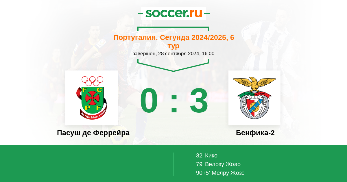 Протокол матча Пасуш де Феррейра против Бенфика-2