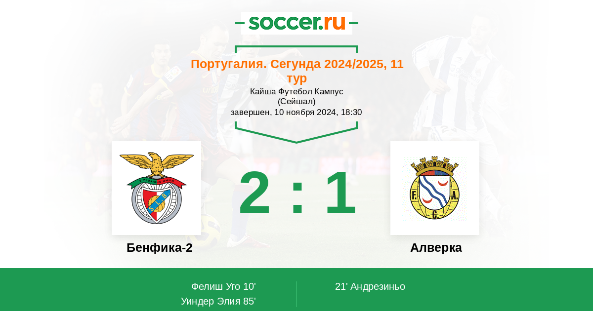 Протокол матча Бенфика-2 против Алверка