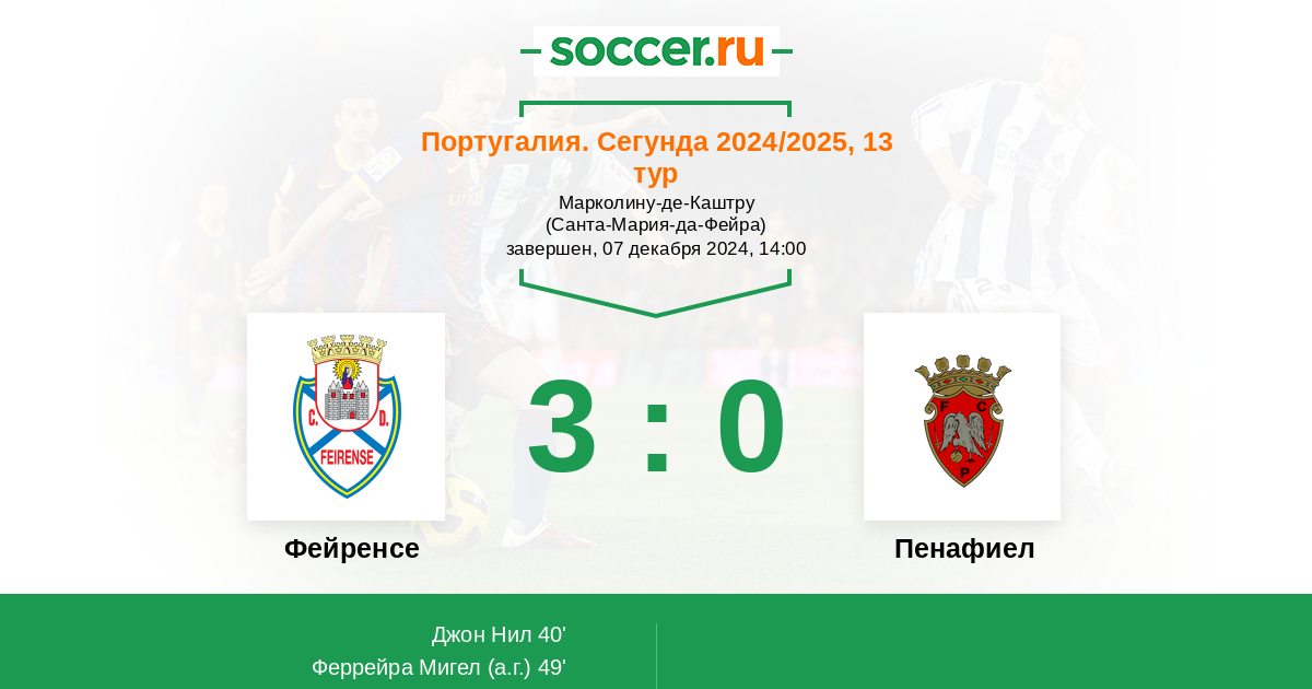 Протокол матча Фейренсе против Пенафиел