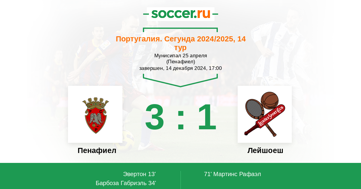 Протокол матча Пенафиел против Лейшоеш