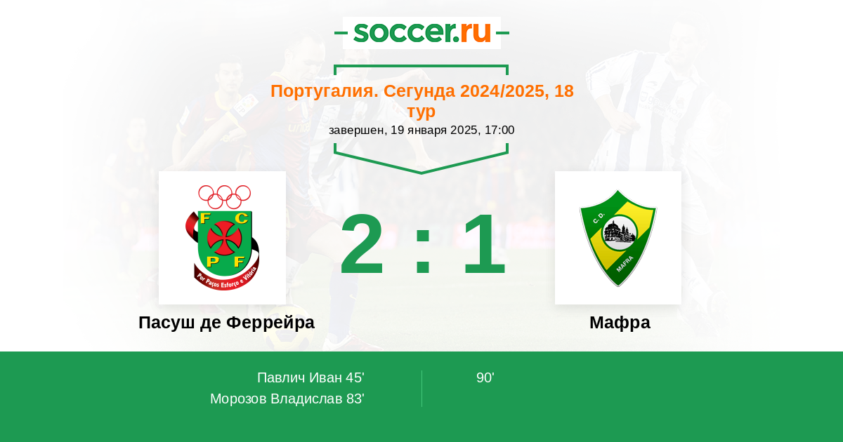 Протокол матча Пасуш де Феррейра против Мафра