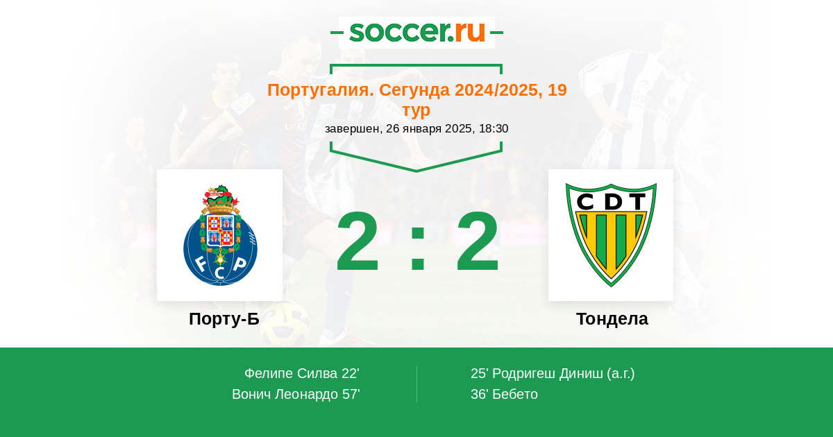 25' (1:1) Автогол Родригеш Диниш (76)