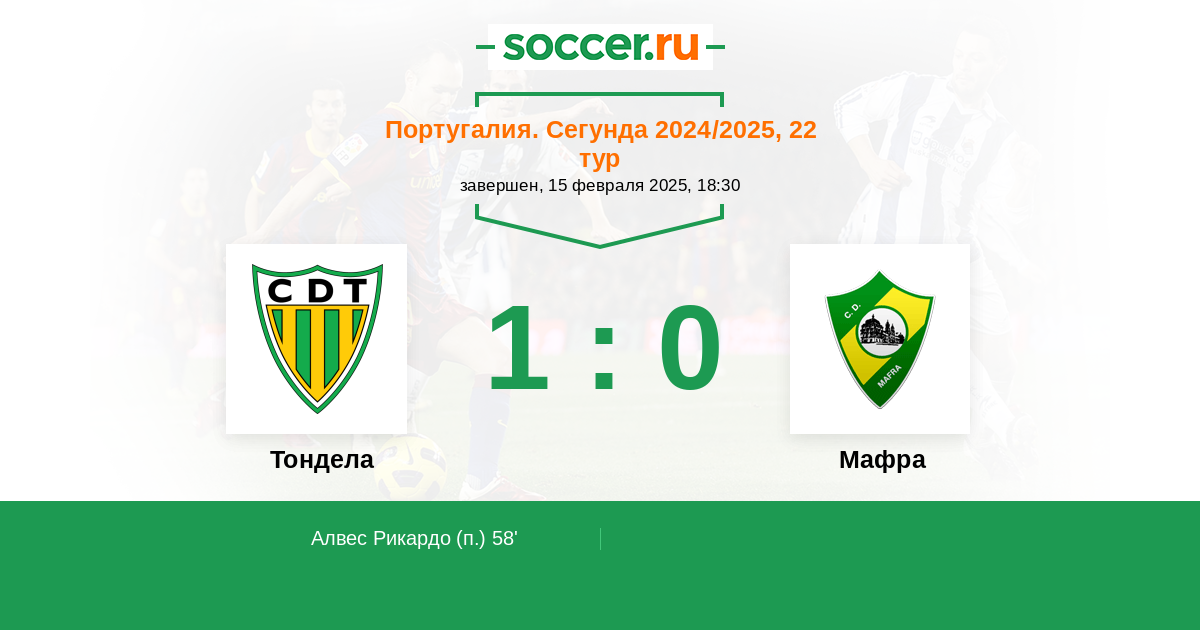 Протокол матча Тондела против Мафра