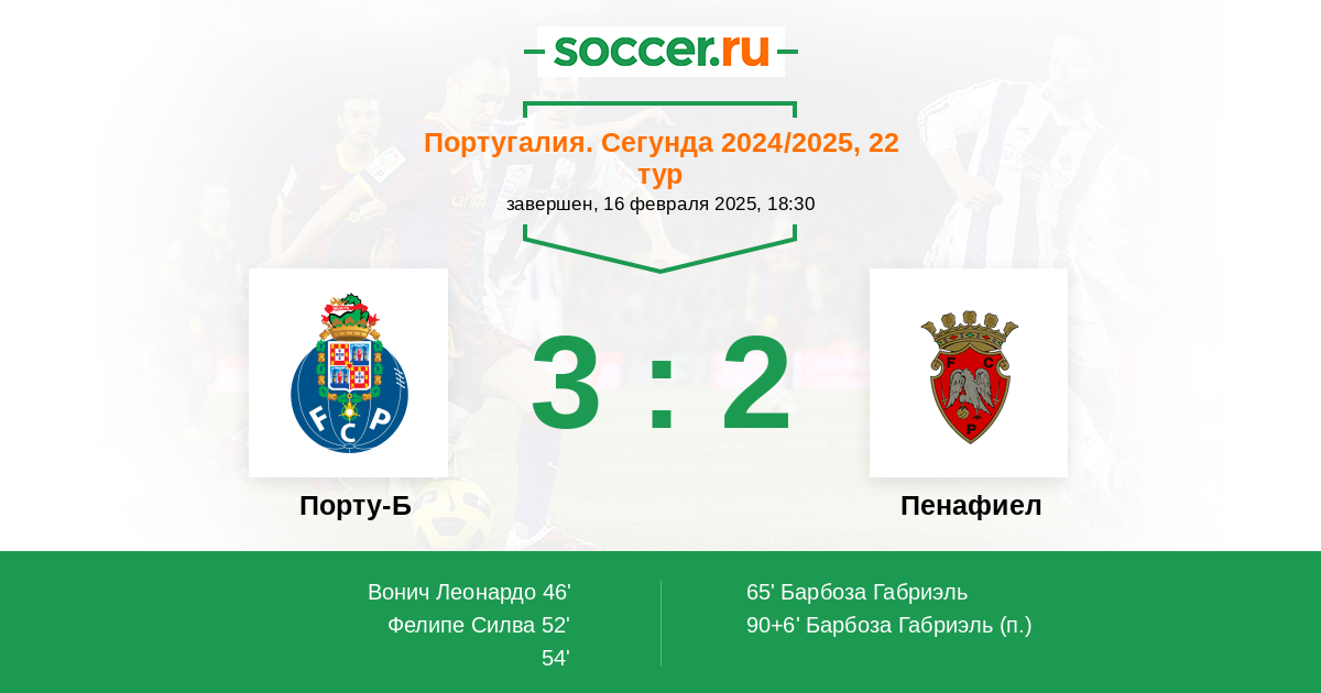 Протокол матча Порту-Б против Пенафиел