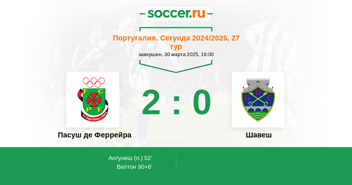 Протокол матча Пасуш де Феррейра против Шавеш