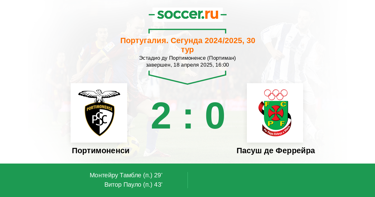 Протокол матча Портимоненси против Пасуш де Феррейра
