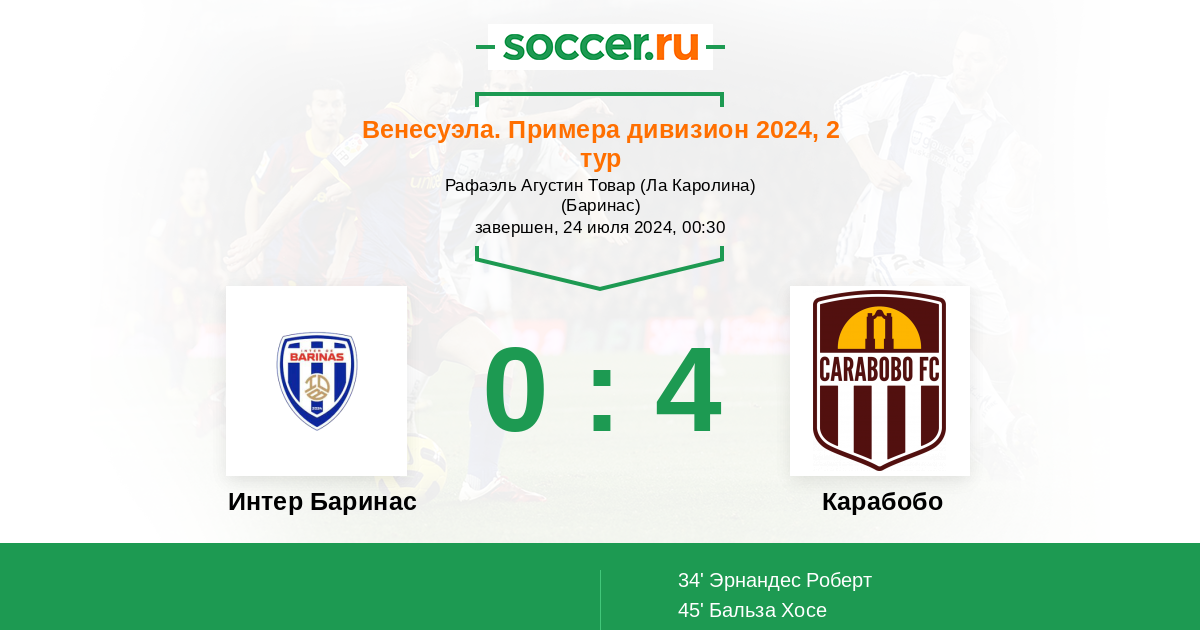 Протокол матча Интер Баринас против Карабобо