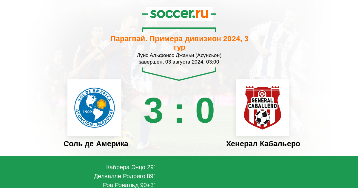 Протокол матча Соль де Америка против Хенерал Кабальеро