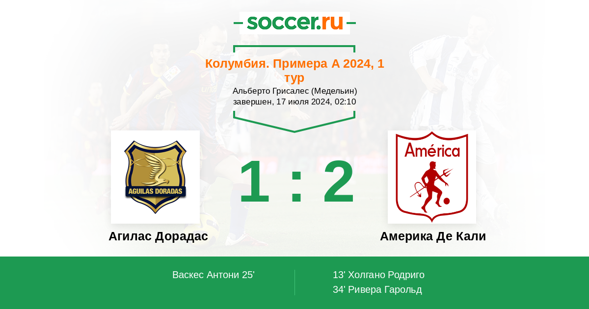 Протокол матча Агилас Дорадас против Америка Де Кали