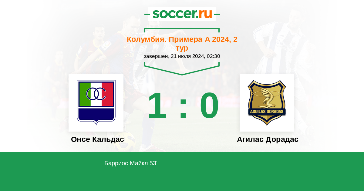 Протокол матча Онсе Кальдас против Агилас Дорадас