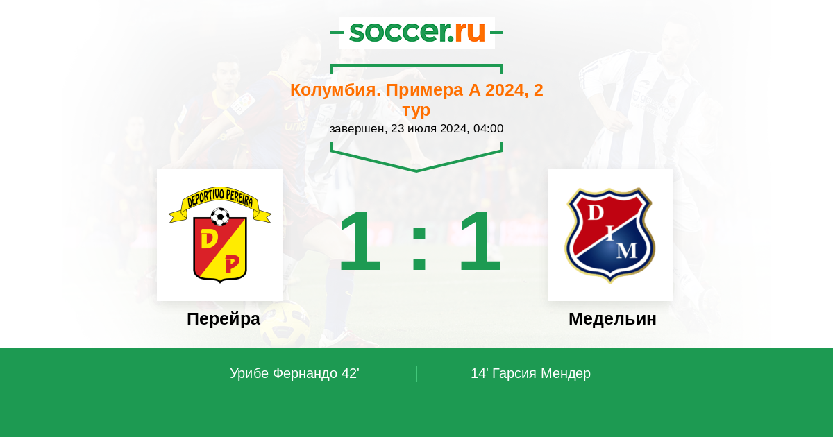 42' (1:1) Урибе Фернандо (20) (Мойя Рохас Хосе Давид (3))