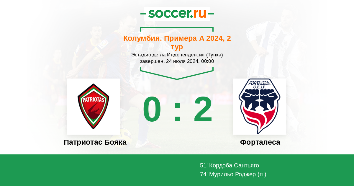 Протокол матча Патриотас Бояка против Форталеса