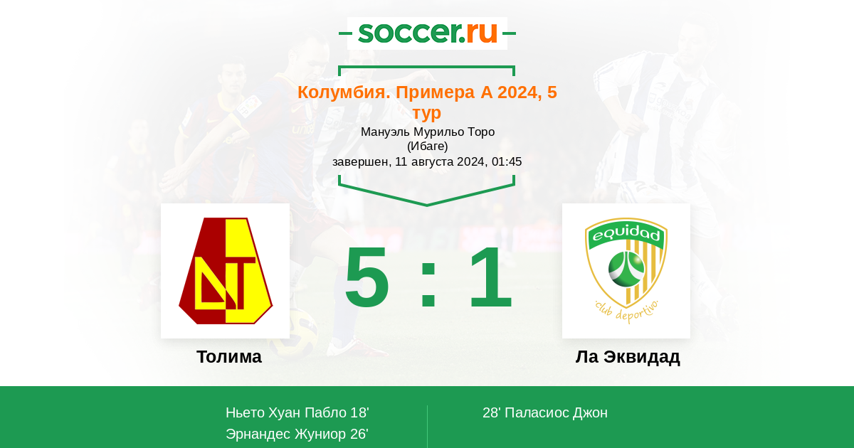 Протокол матча Толима против Ла Эквидад