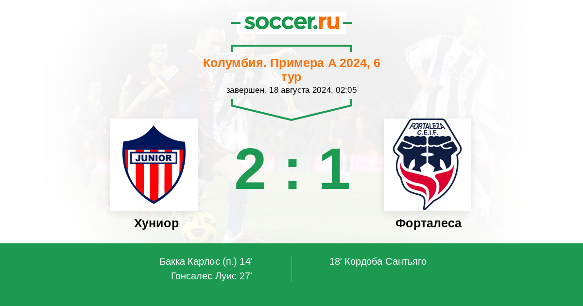 18' (1:1) Кордоба Сантьяго (29) (Андерсон Иван (26))