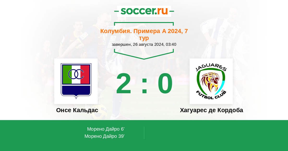 39' (2:0) Морено Дайро (17) (Риос Лукас (10))