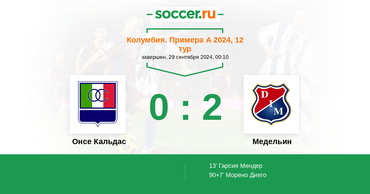 Протокол матча Онсе Кальдас против Медельин