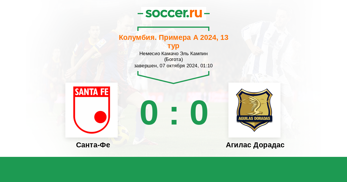 Протокол матча Санта-Фе против Агилас Дорадас
