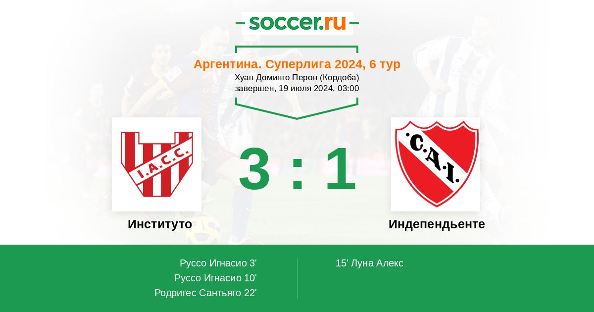 Протокол матча Институто против Индепендьенте