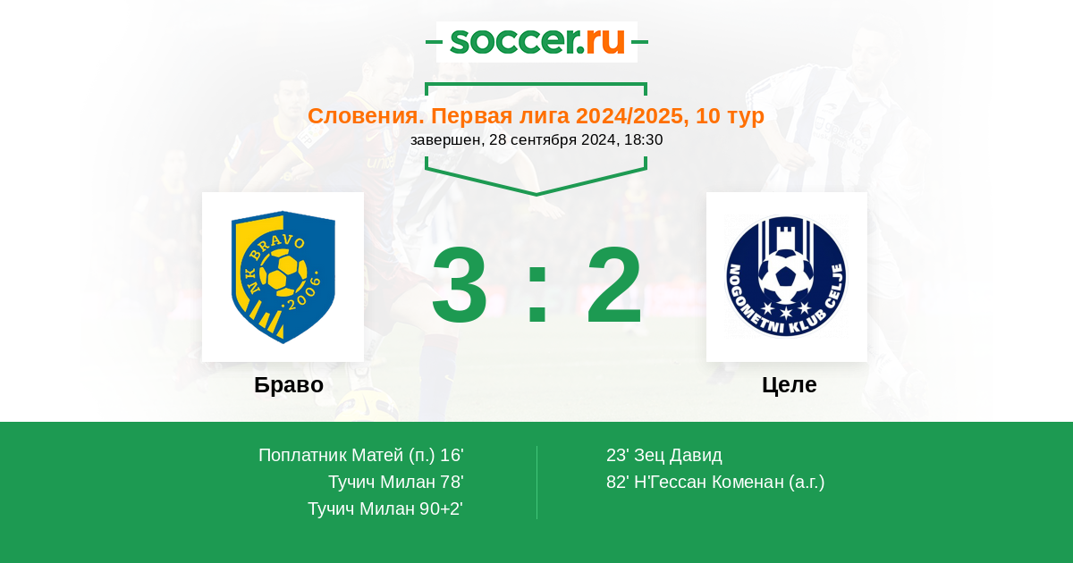 Протокол матча Браво против Целе
