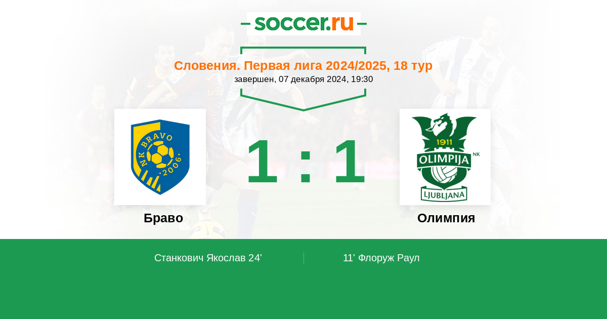 Протокол матча Браво против Олимпия