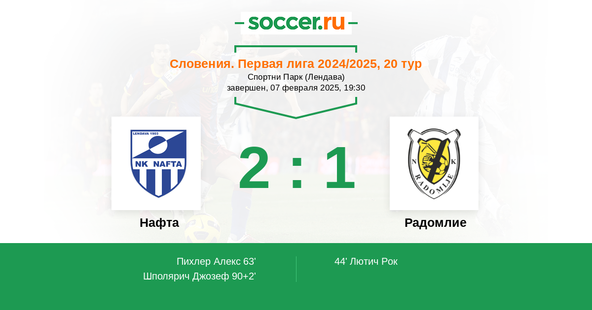 90+2' (2:1) Шполярич Джозеф (50)