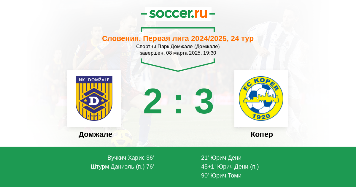 Протокол матча Домжале против Копер