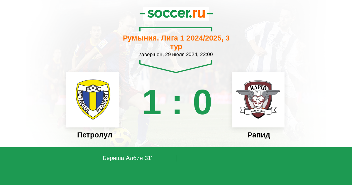 Протокол матча Петролул против Рапид