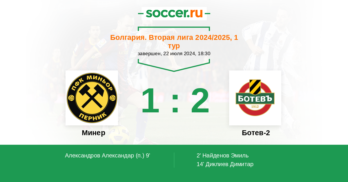 Протокол матча Минер против Ботев-2