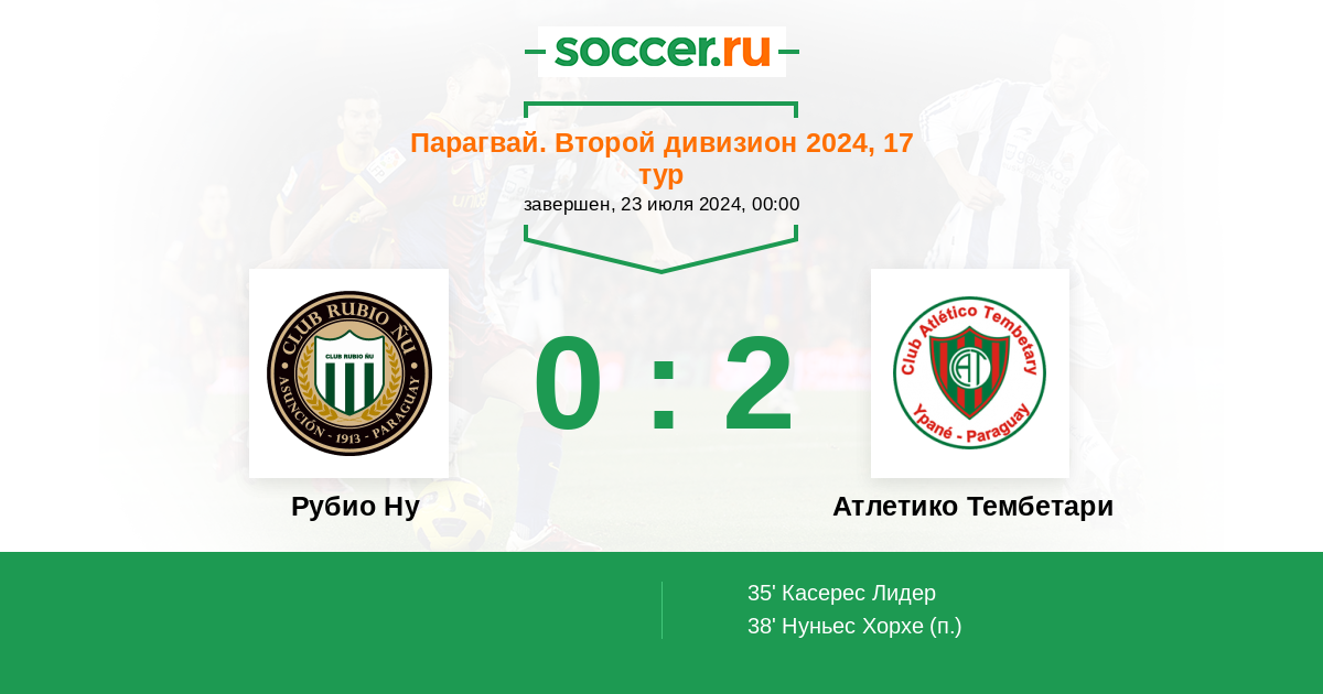 Протокол матча Рубио Ну против Атлетико Тембетари
