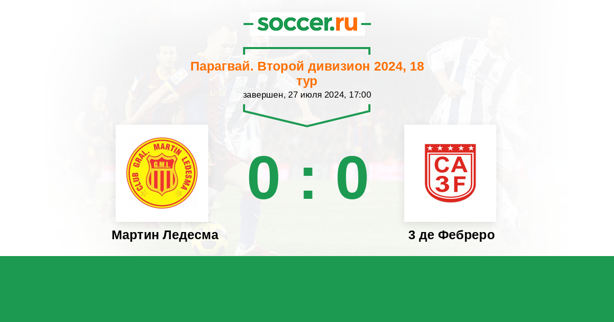 Протокол матча Мартин Ледесма против 3 де Фебреро