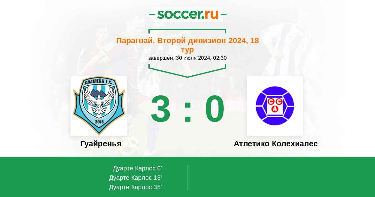 Протокол матча Гуайренья против Атлетико Колехиалес