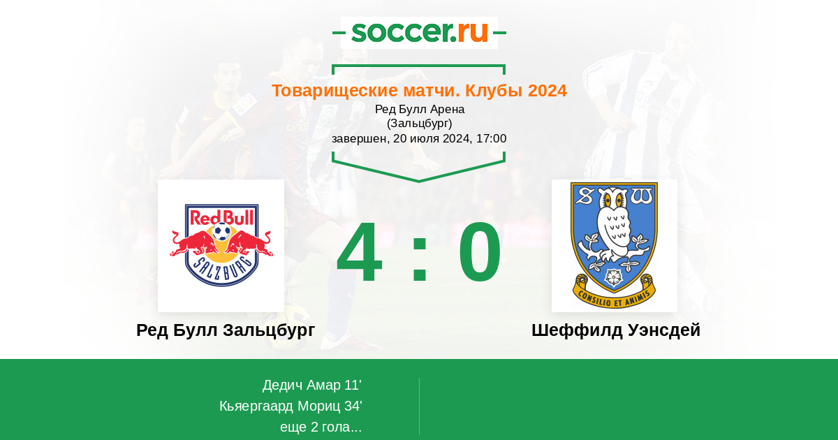 Протокол матча Ред Булл Зальцбург против Шеффилд Уэнсдей
