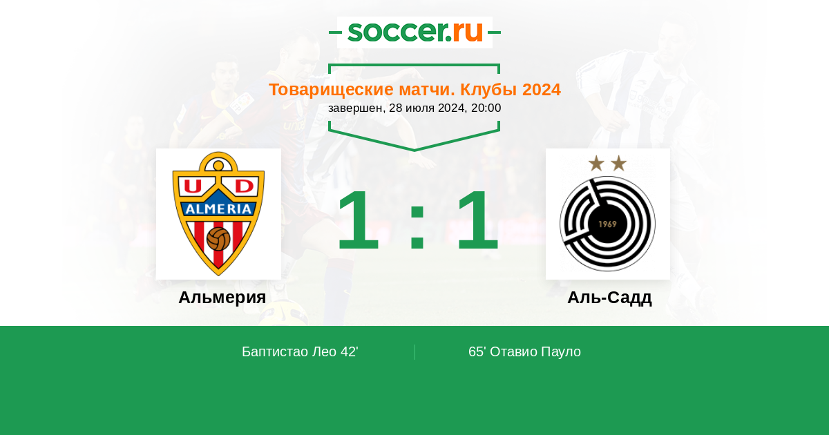 Протокол матча Альмерия против Аль-Садд