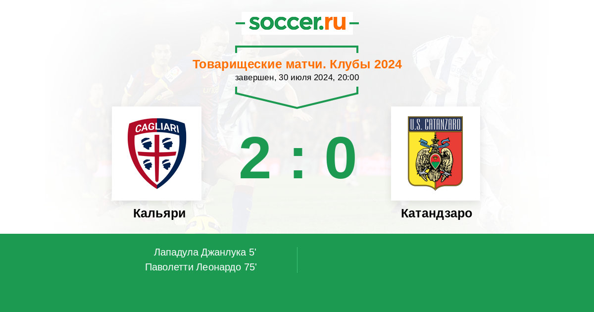 Протокол матча Кальяри против Катандзаро