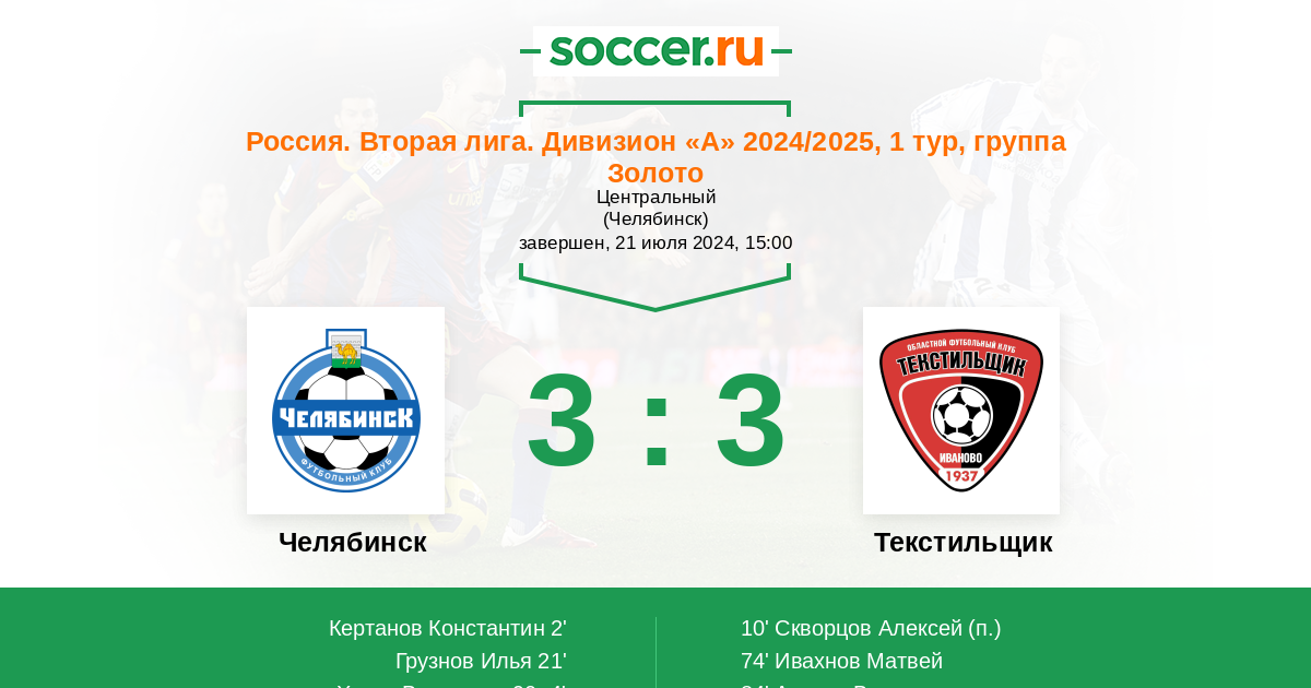 Протокол матча Челябинск против Текстильщик
