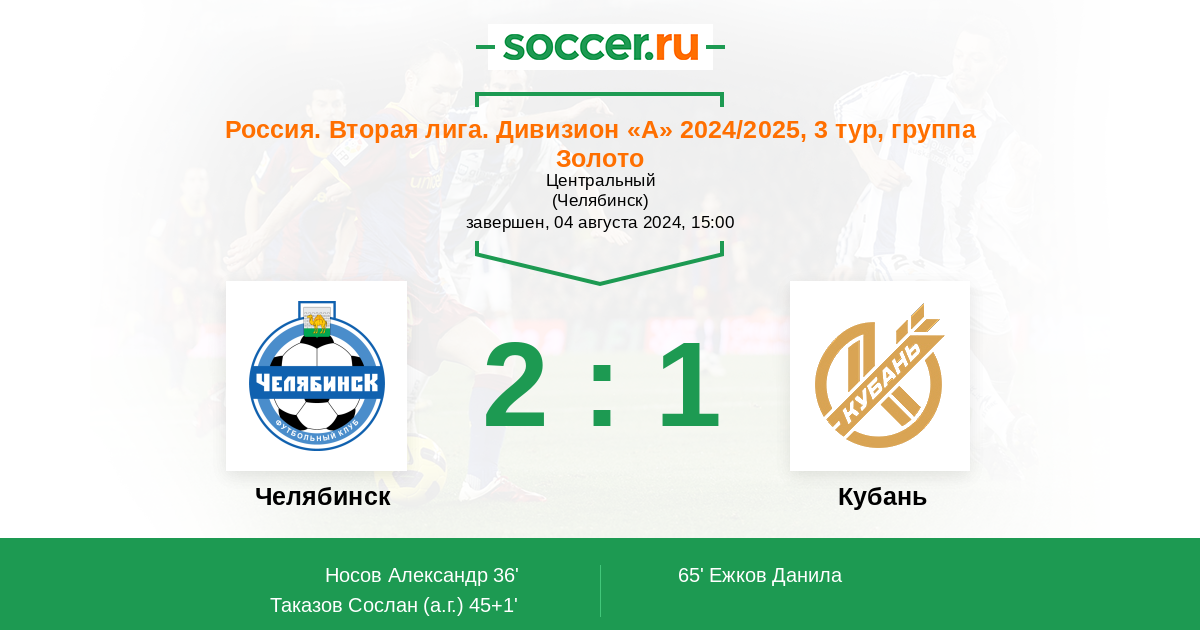 Протокол матча Челябинск против Кубань
