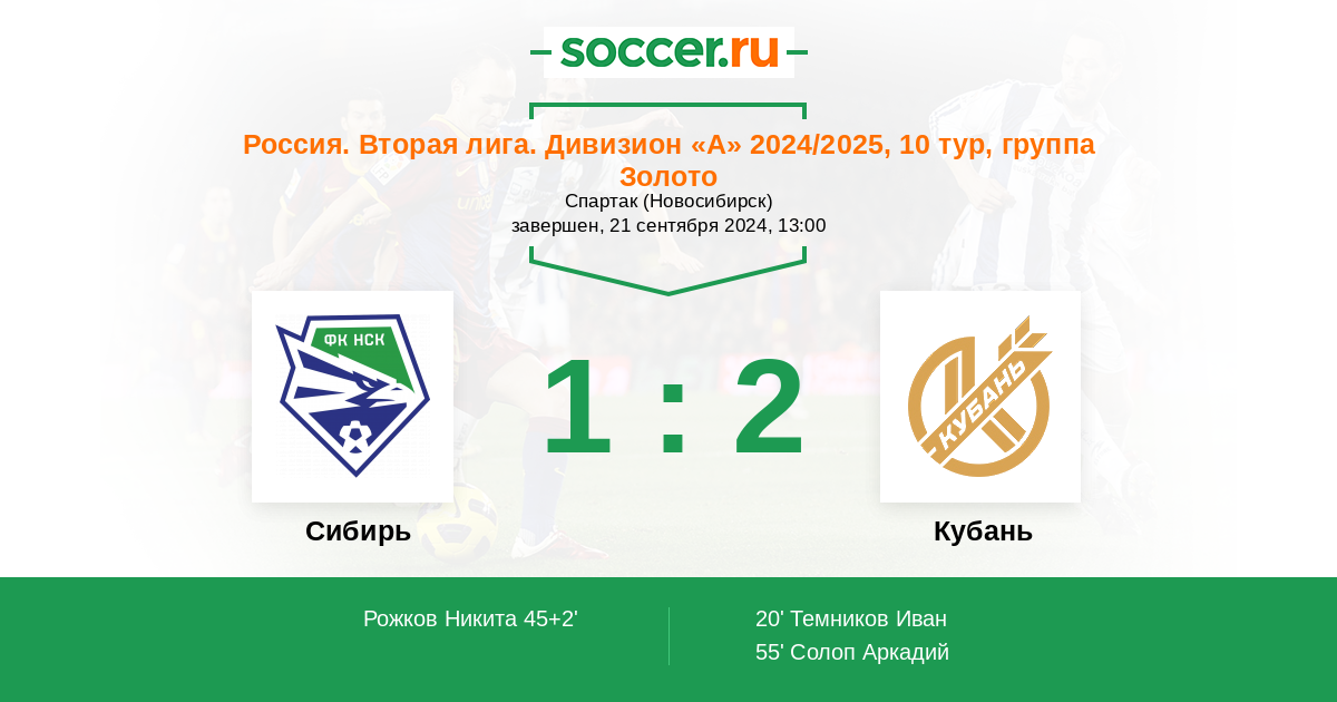 Протокол матча Сибирь против Кубань
