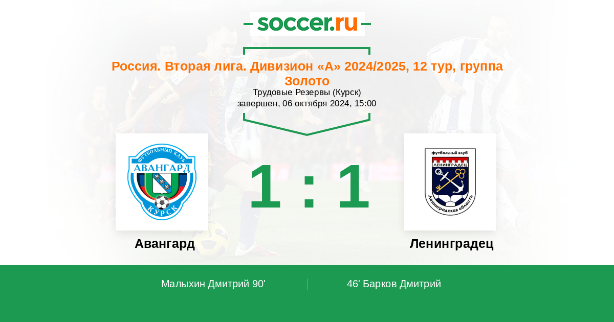 Протокол матча Авангард против Ленинградец