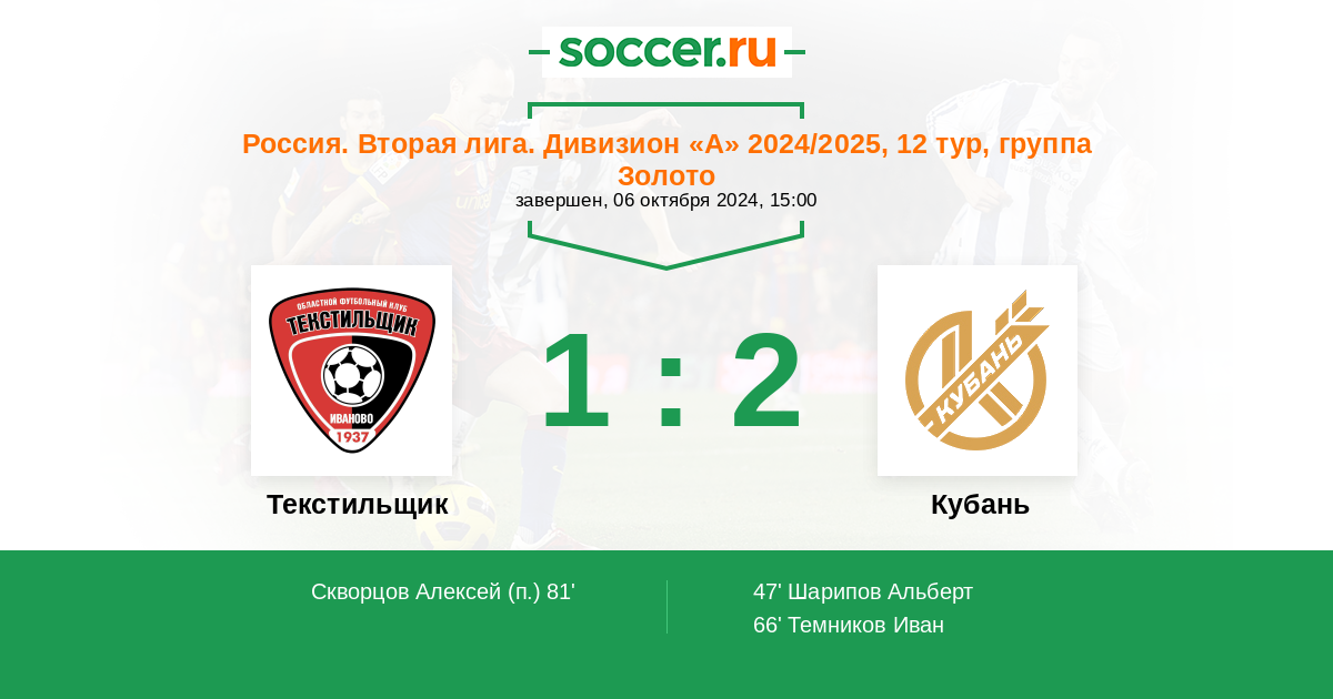 Протокол матча Текстильщик против Кубань
