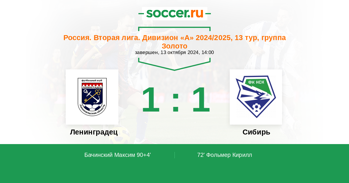 Протокол матча Ленинградец против Сибирь